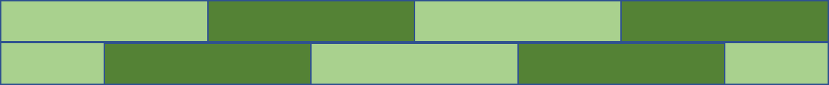 3. Schritt: Jetzt kann der Rollrasen verlegt werden. Achten Sie darauf, dass er schnellstmöglich nach Abholung/Lieferung verlegt wird. Man beginnt nun in der entferntesten Ecke der Gartenfläche, um das Betreten des frisch verlegten Rollrasens zu vermeiden und am besten an der längsten Seite um möglichst wenig Verschnitt zu erzeugen. Die Rasenrollen müssen dicht an dicht gelegt werden und straff gezogen werden damit später keine Lücken entstehen. Es empfiehlt sich die Verlegung im Verbundsystem (siehe Abb. unten). Die Rasenrollen können leicht mit einem scharfen Küchenmesser zugeschnitten werden. Nach dem Verlegen wird der Rollrasen vorsichtig mit einer Rasenwalze angedrückt somit erhält der Rollrasen guten Bodenkontakt und kann anwurzeln.